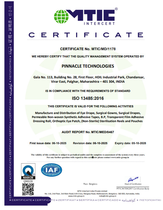 Pinnacle ensures product qualification in accordance with ISO 13485, and BIS IS:17334 standards.